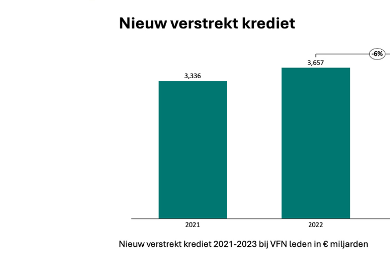 Aalders: “Allereerst een nuance. We kijken enerzijds naar nieuw afgesloten kredieten en anderzijds naar wat al uitstaat. Als VFN vragen we aan onze leden de omzet van het afgelopen jaar. Volgens mij rekent BKR onder consumptief krediet ook andere producten dan alleen persoonlijke leningen, maar bij de VFN gaat het zuiver om de persoonlijke leningen. De cijfers van de VFN geven daardoor een ander beeld dan jarenlange daling. In 2022 steeg het nieuw verstrekte krediet bij de VFN leden. In 2023 noteerden we 3,5 miljard euro of 6% minder nieuw afgesloten krediet dan in 2022. Daarop inzoomend is niet het aantal afgesloten persoonlijke leningen veel minder, maar vooral het gemiddelde geleende bedrag is een stuk lager.”